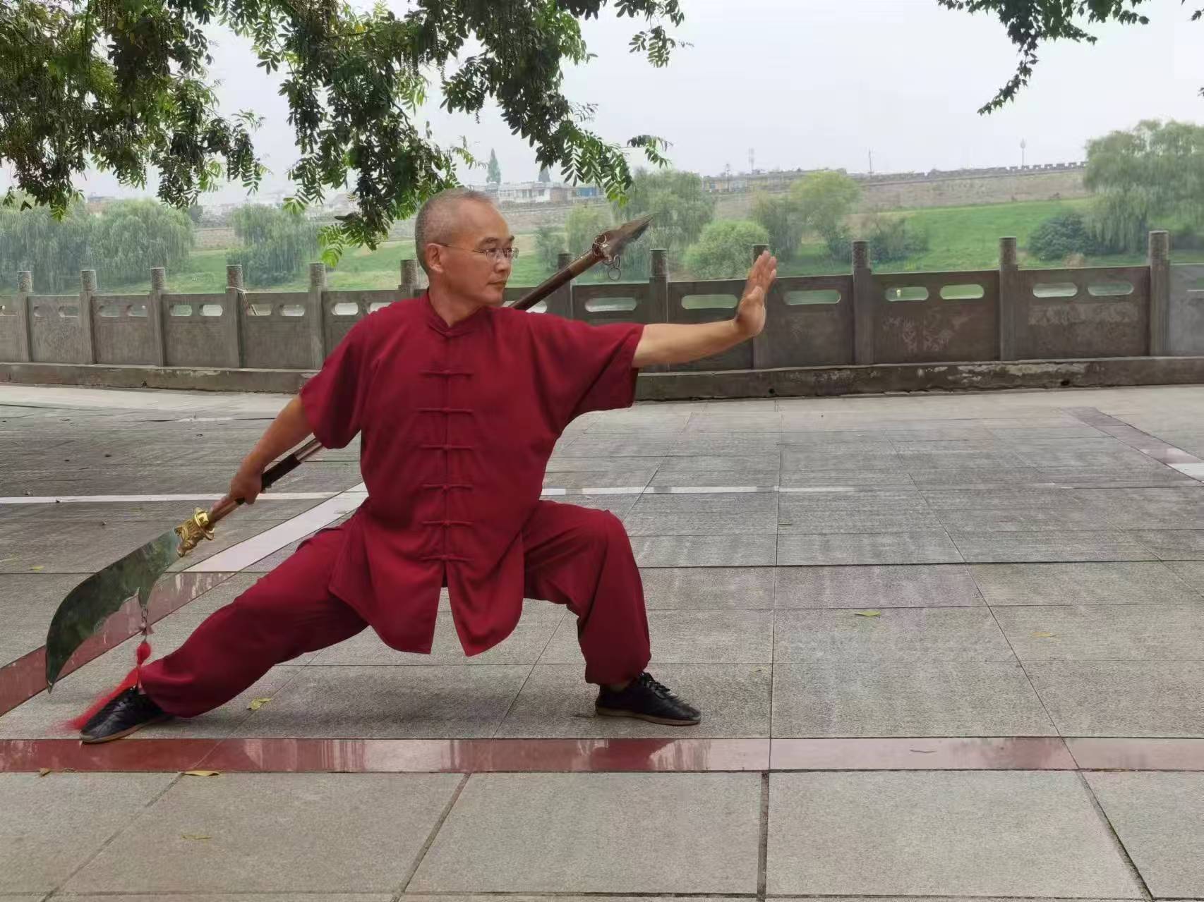 王玉宝:汉族,寿春中学物理高级教师,陈氏太极拳第十三代传承人,师承太极名家李化春大师。为得太极精髓,他深入学习、研究《易经》的太极阴阳理论、中医经络学说以及道家导引吐纳之术。通过名师指点及个人刻苦钻研,已系统学习了老架一、二路、精要十八式、二十四式陈氏太极拳,研修了春秋大刀、陈氏太极枪、太极扇、太极剑等多种器械。习武十多年之久,并逐渐形成自己的太极风格。