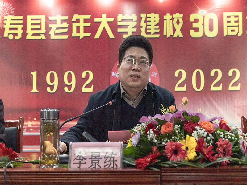 李景练代表县委、县政府向寿县老年大学建校三十周年表示热烈的祝贺,向关心和支持寿县老年教育事业发展的社会各界朋友和老年大学教职工表示衷心的感谢,向广大老同志们致以亲切的问候。