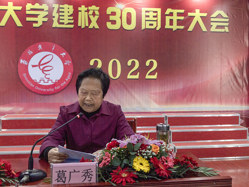 寿县老年教育委员会副主任、寿县老年大学校长葛广秀作《三十而立 风华正茂》主题讲话,她回顾寿县老年大学30的办学历程,总结了成绩和经验。认为办好老年大学一是靠县委、县政府的重视、县直有关部门的支持,县老干局的关心和帮助,二是学校有一个团结协作、无私奉献的工作团队、三是有一批乐于奉献、热爱老年教育事业的教师队伍,以及广大老年朋友的积极参于。