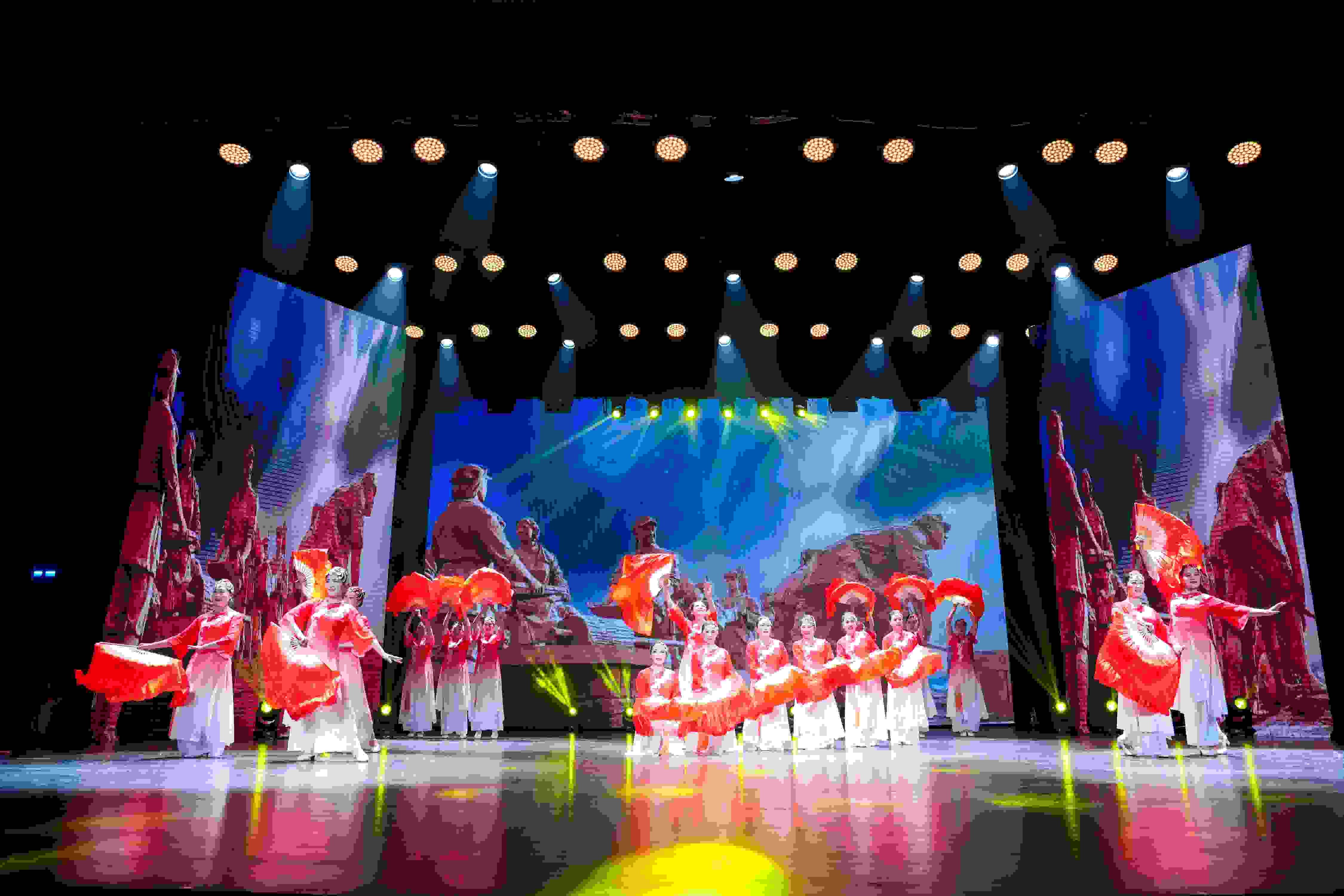 演播大厅内,灯光璀璨夺目,舞台布景尽显长三角的人文韵味与时代气息。在34个录制节目中,寿县老年大学优雅时尚艺术团带去的扇舞《江山》第二个出场。 旋律响起,艺术团20位成员身着华服翩然登场。激昂的节奏与舞美身姿相得益彰,她们将对祖国山河的热爱、对幸福生活的赞颂,融入每一个眼神、每一个动作,刚柔并济的表演,完美的诠释了《江山》的深刻内涵。