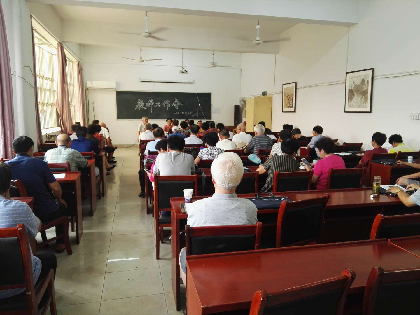 虽然已经立过秋了,但炎热依然不愿离去。秋学期就要来临了,寿县老年大学为了做好开学工作,于八月二十八下午,在老年大学第三大教室召开教师、班长会,安排布置秋学期工作。会议由副校长尹本盛主持,办公室徐主任向大家宣读了省级示范大学的验收条例和标准,汇报了假期有关材料的准备情况;葛校长小结了上学期学校的工作情况,肯定学校的工作成绩也总结了需要加强的地方,对秋学期工作做了详细的部署和安排,老师们对学校的计划进行了讨论并提出了一些建设性的意见,大家一致表示尽力做好工作,一举通过省级示范校的验收。