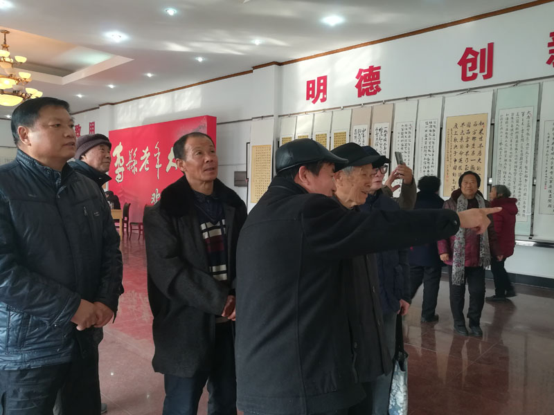 这次共展出46幅作品,主要是歌颂我国社会主义建设所取得的辉煌成就。寿县老年教育委员会副主任、寿县老年大学校长葛广秀出席了开幕式,她对书法班活跃校园文化和学员所取得成绩给予了充分肯定,勉励他们要不忘初心、牢记使命,创作出更多书写正能量的佳作,利用书法这个平台,为弘扬中华民族的传统文化,宣传党的各项方针、政策和新时代中国特色社会主义思想作出更多的贡献。