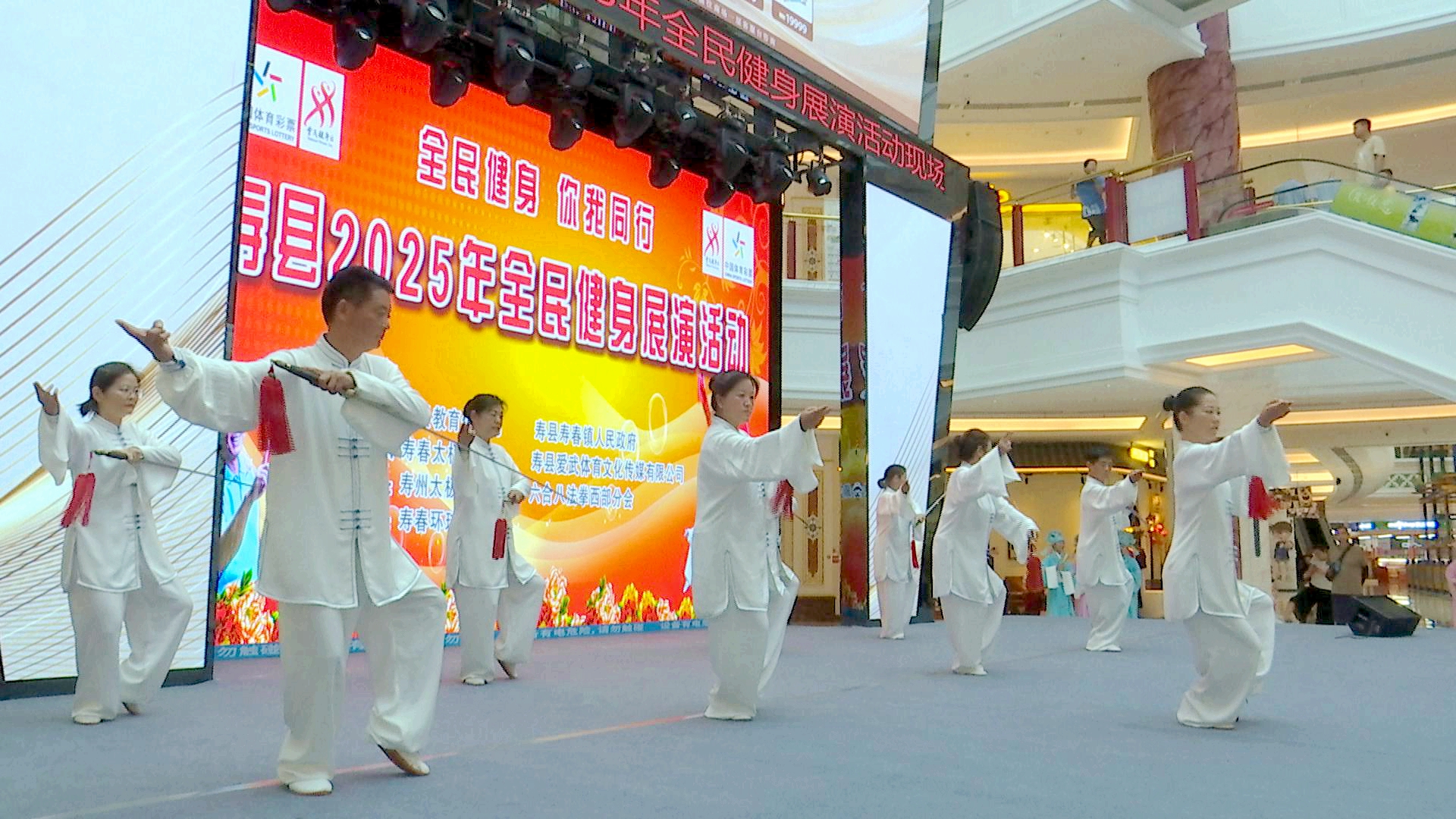 全民健身,你我同行。为纪念第17个“全民健身日”促进我县全民健身运动开展,丰富社会体育文化生活,县教体局、寿春镇联合主办的全民健身展演活动连续两天在在寿县体育馆,寿春环球港精彩呈现。县体育健身舞协会、县太极拳协会、武术协会等体育社会组织的健身爱好者们表演了广场舞、太极伞、太极拳、交谊舞等近30多个节目。这些节目大部分由寿县老年大学学员单独或合作上演,节目充分展示了老年大学学员的老有所学、老有所乐、服务社会的银发风采。以及我县广大干群坚持科学健身、崇尚健康的生活理念。